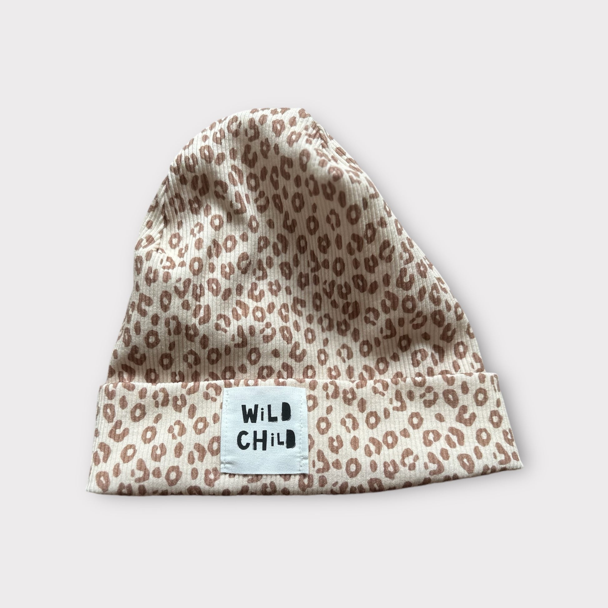 Süße Beanie Mütze für Kleinkinder aus Ribjersey mit Umschlag.