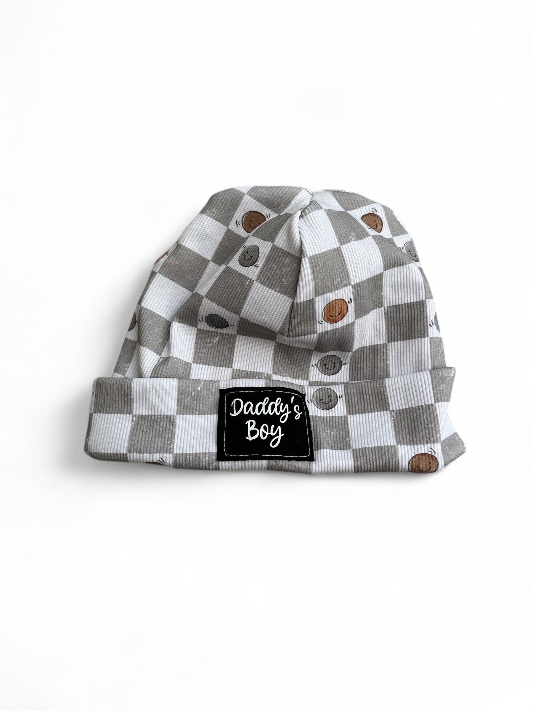 Süße Beanie Mütze für Kleinkinder aus Ribjersey mit Umschlag.