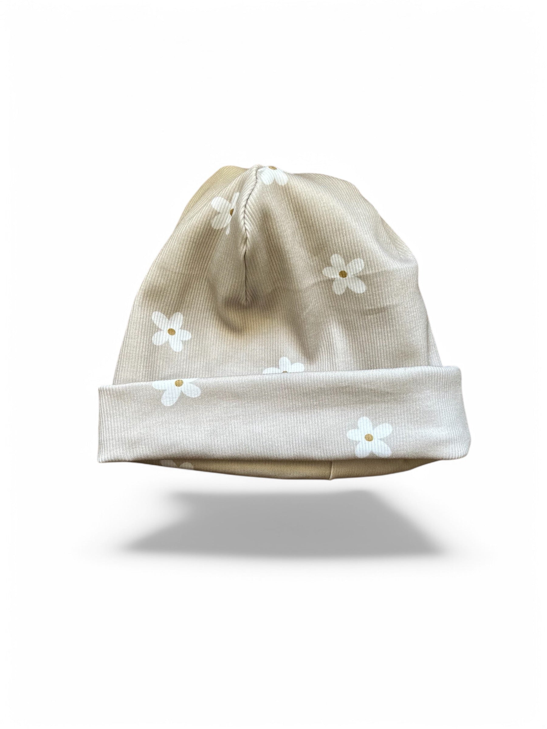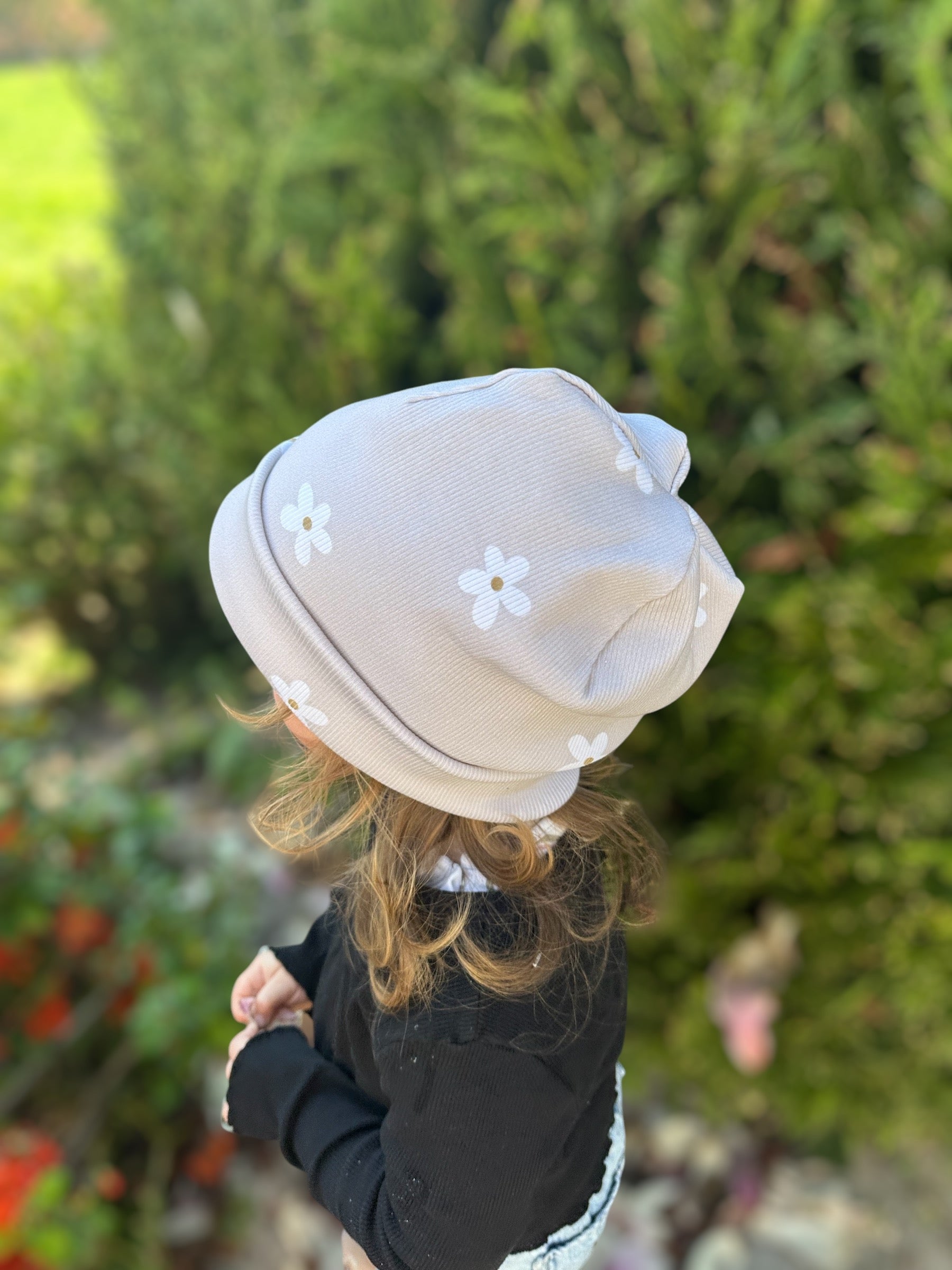 Süße Beanie Mütze für Kleinkinder aus Ribjersey mit Umschlag.